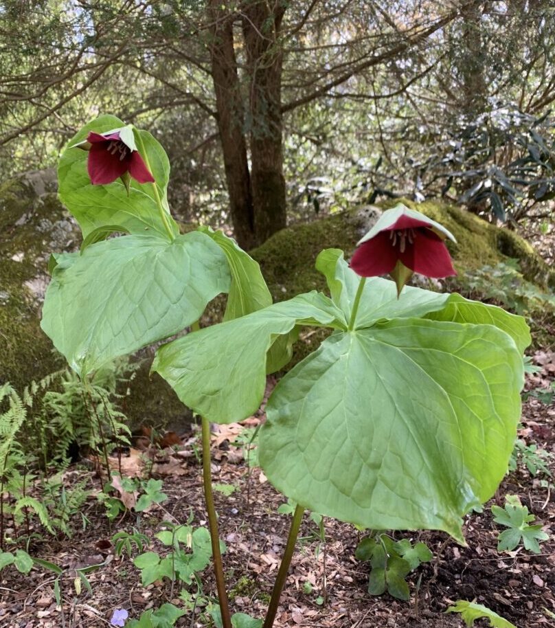 In the garden we’re currently planting Iris cristata, Indian pink, trilliums, large-flowered bellwort, twinleaf, jack-in-the-pulpit, hepatica, cranesbill geranium, shooting star, and featherbells. Spring and summer are a great time to plant up here at 4,500 feet. The air is cool and humid, so plants will not go into severe shock. They have plenty of time to “root in,” which is growers’ jargon for developing a mature root system or filling the pot with roots. This anchors the plant before harsh winter temperatures freeze the soil. We’ve found when we plant in late fall, frost can heave small plants out of the ground, freezing their roots and killing them. The smaller the plant, the more vulnerable to this damage. At lower elevations, winter arrives later, and this is not as much of a concern.
